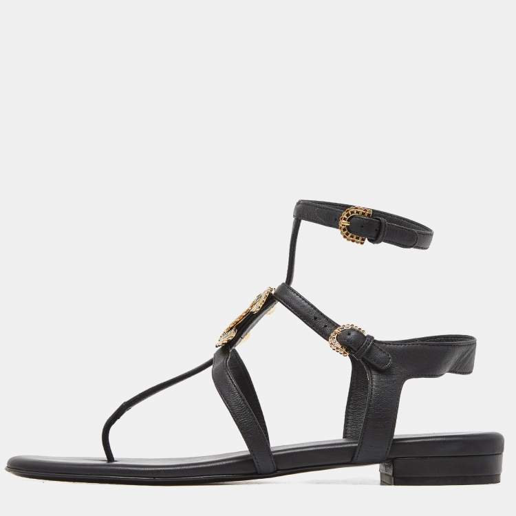 Chanel Black Leather CC Logo Gladiator Sandals Size 39