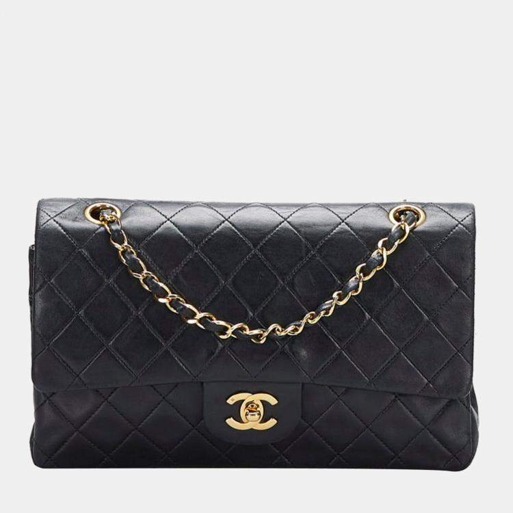 Pre Owned Chanel Black Leather Classic Double Flap Shoulder Bag