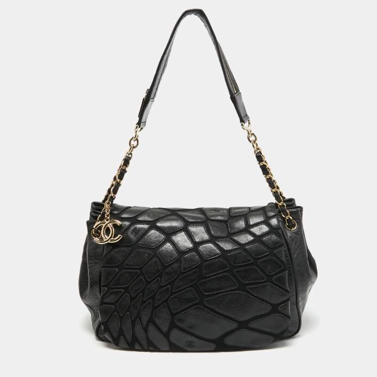 Chanel Black Leather Patchwork Accordion Shoulder Bag