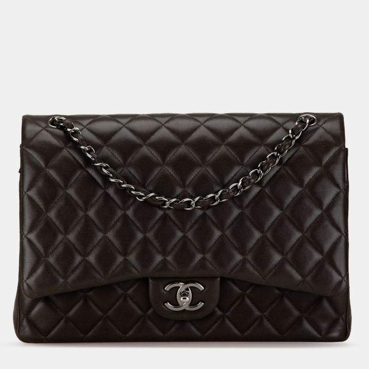 Pre Owned Chanel Black Maxi Classic Lambskin Double Flap