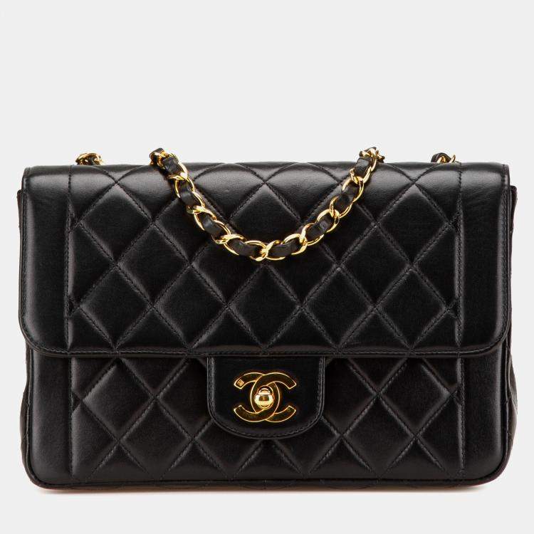 Pre Owned Chanel Black Medium CC Quilted Lambskin Border Single Flap