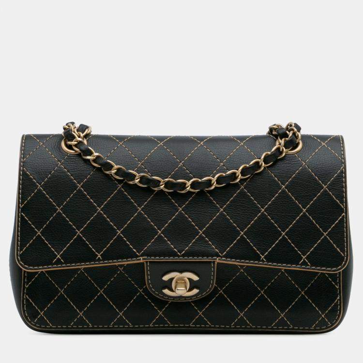 Chanel Black Medium Classic Calfskin Wild Stitch Double Flap