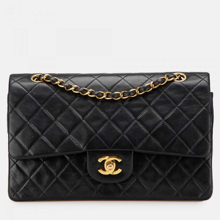 Pre Owned Chanel Black Medium Classic Lambskin Double Flap