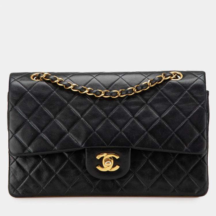 Pre Owned Chanel Black Medium Classic Lambskin Double Flap