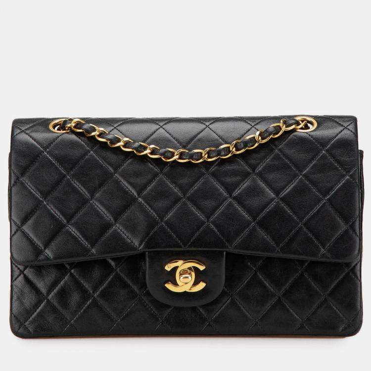 Pre Owned Chanel Black Medium Classic Lambskin Double Flap