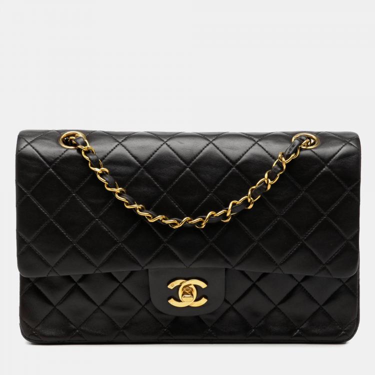 Pre Owned Chanel Black Medium Classic Lambskin Double Flap