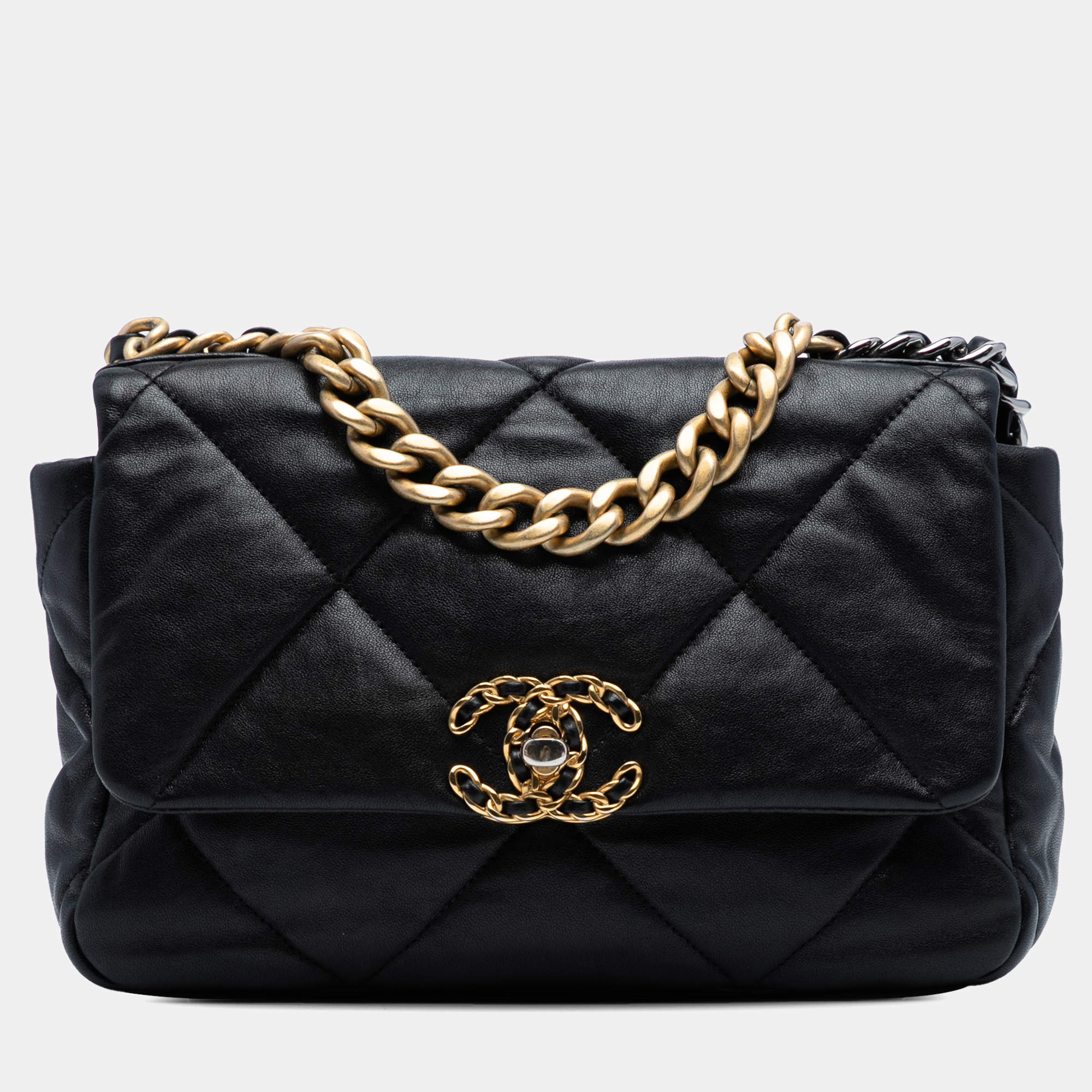 Pre Owned Chanel Black Medium Lambskin 19 Flap