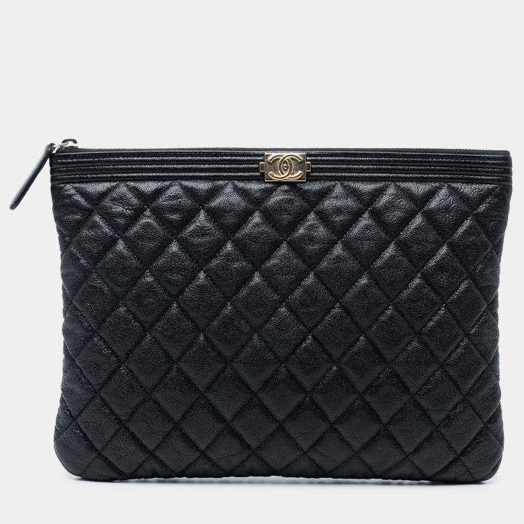 Chanel Black Medium Quilted Caviar Boy O Case Clutch