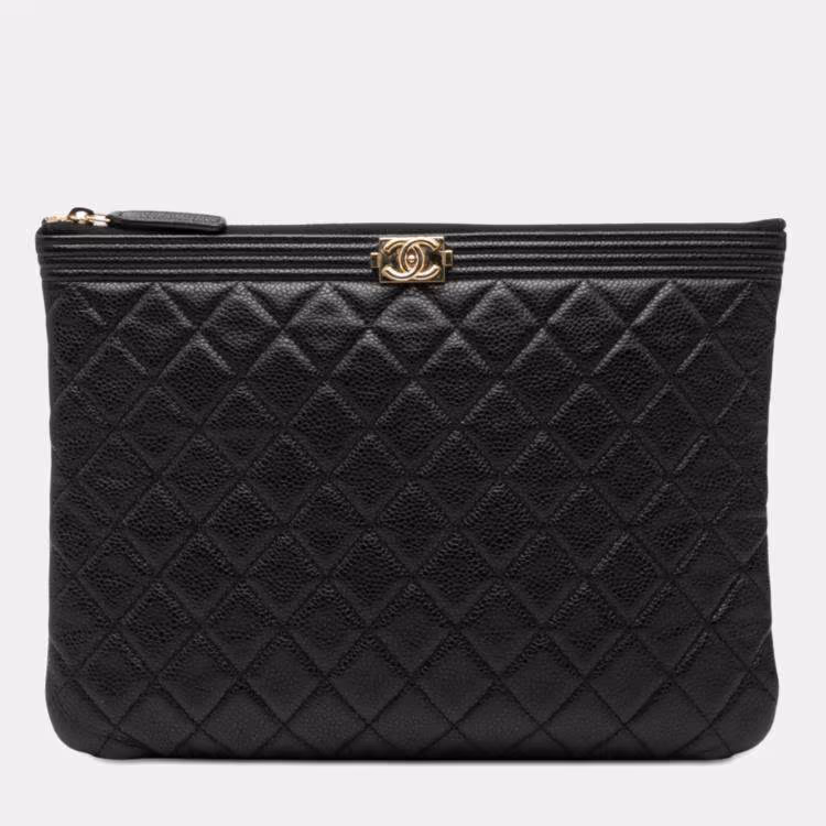 Chanel Black Medium Quilted Caviar Boy O Case Clutch