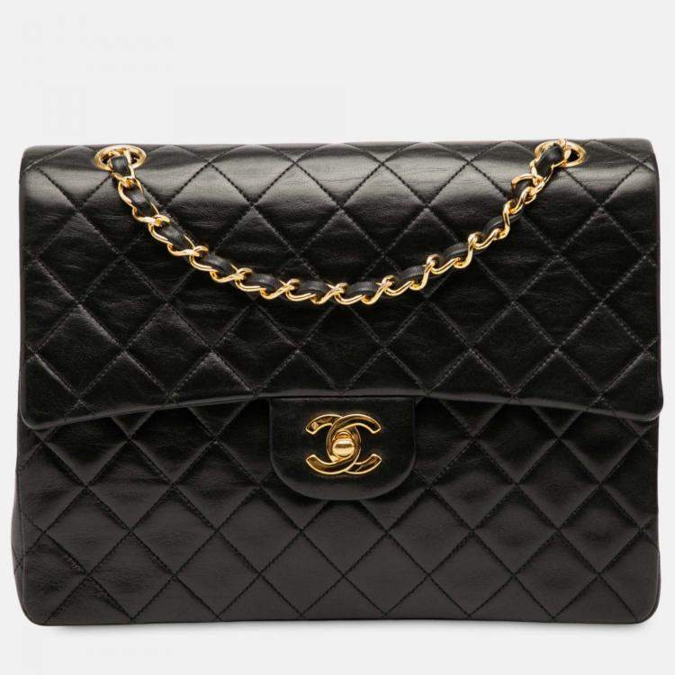 Pre Owned Chanel Black Medium Tall Classic Lambskin Double Flap