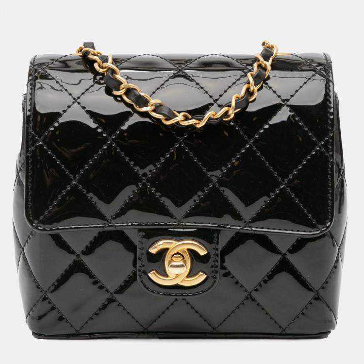 Chanel Black Mini Square Classic Patent Single Flap Bag