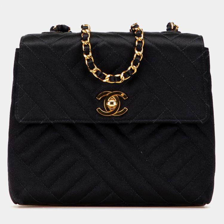 Chanel Black Mini Square Diagonal Quilted Satin Single Flap Bag