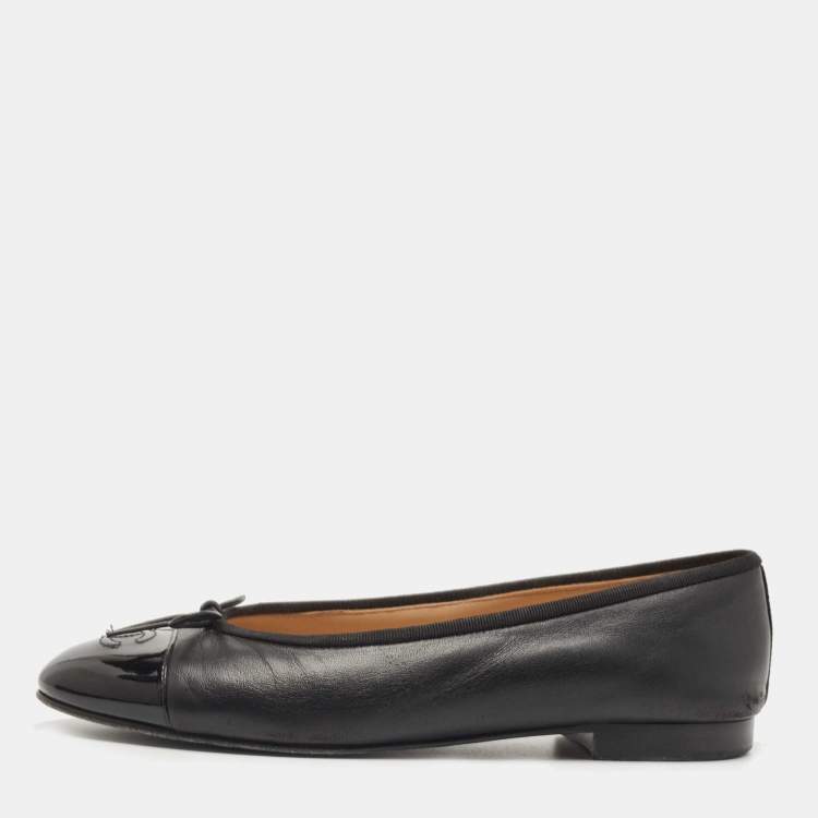 Chanel Black Patent and Leather CC Cap Toe Ballet Flats Size 39.5