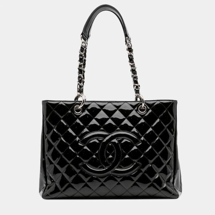 Pre Owned Chanel Black Patent Grand Shopping Tote