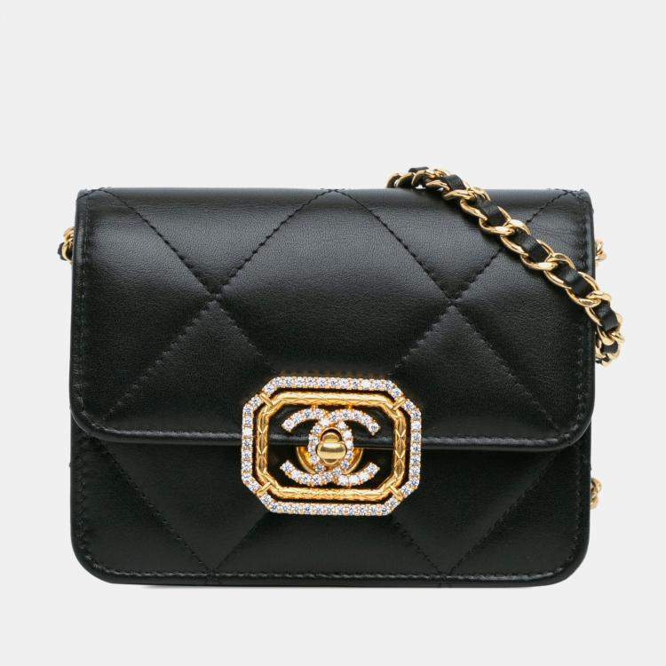 Chanel Black Quilted Calfskin Strass Card Holder On Chain
