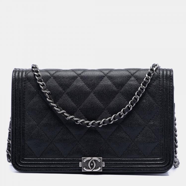 Chanel Black Quilted Caviar Boy Wallet on Chain