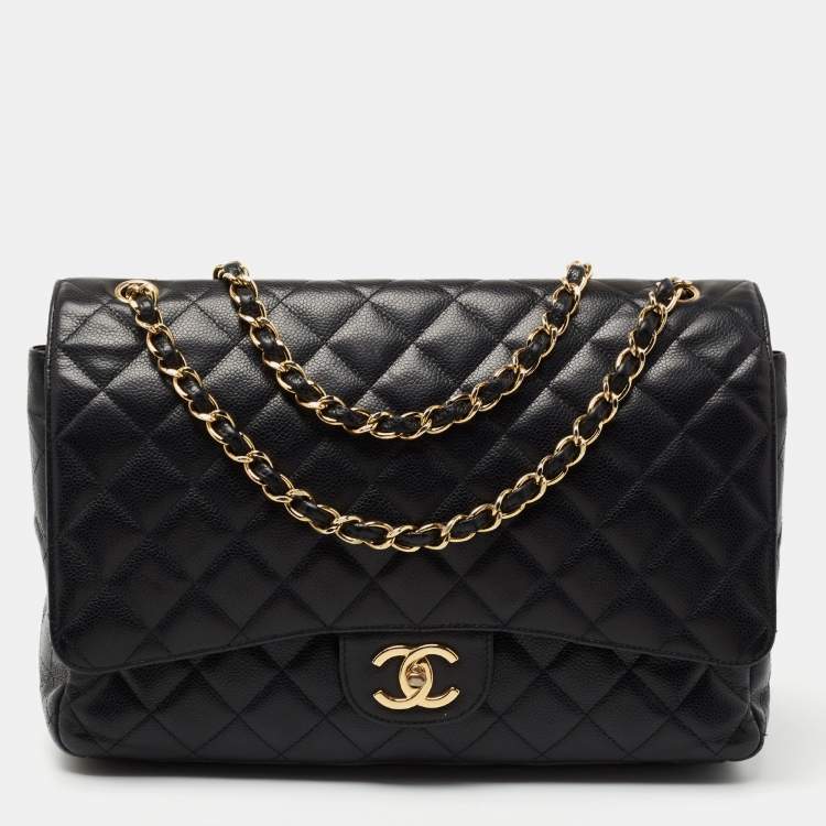 Chanel Black Quilted Caviar Leather Maxi Classic Double Flap Bag