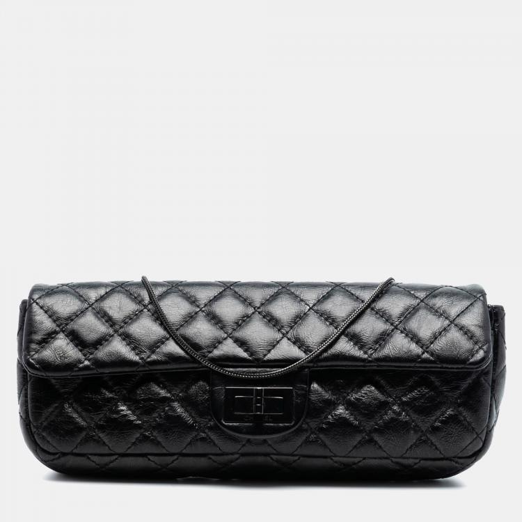 Chanel Black Quilted Glazed Calfskin Reissue 2.55 Clutch with Chain