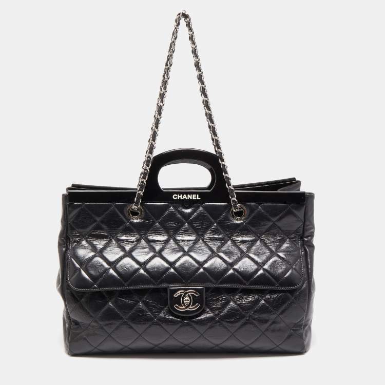Chanel Black Quilted Glazed Leather Large CC Delivery Tote