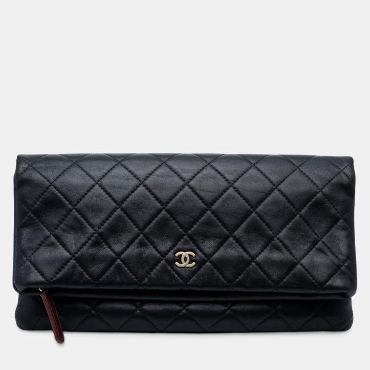 Pre Owned Chanel Black Quilted Lambskin CC Beauty Foldover Clutch