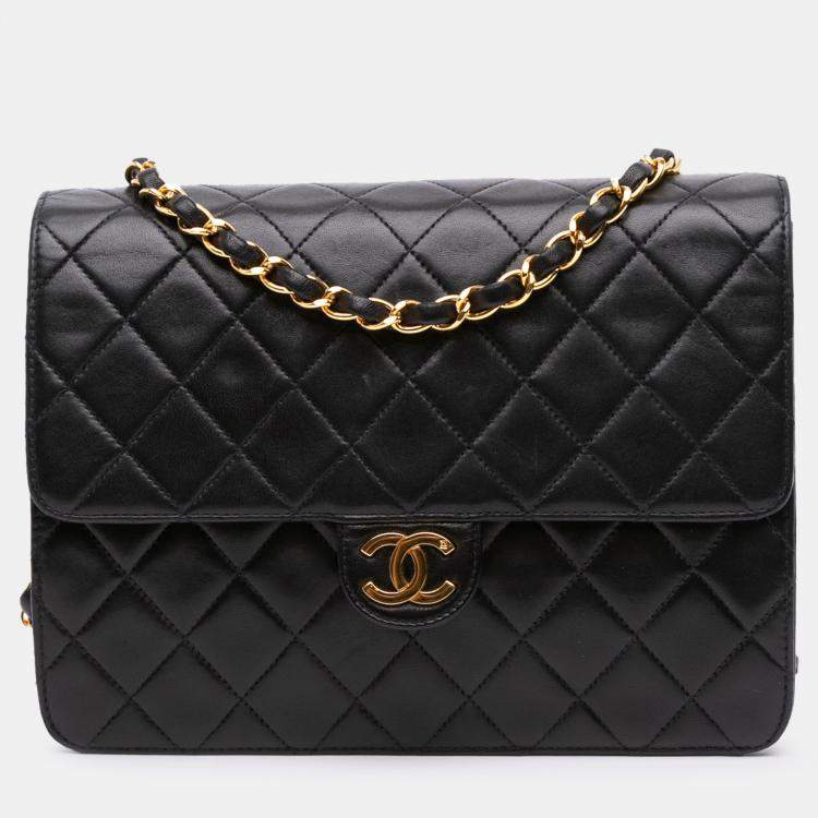 Pre Owned Chanel Black Small CC Quilted Lambskin Half Single Flap Bag