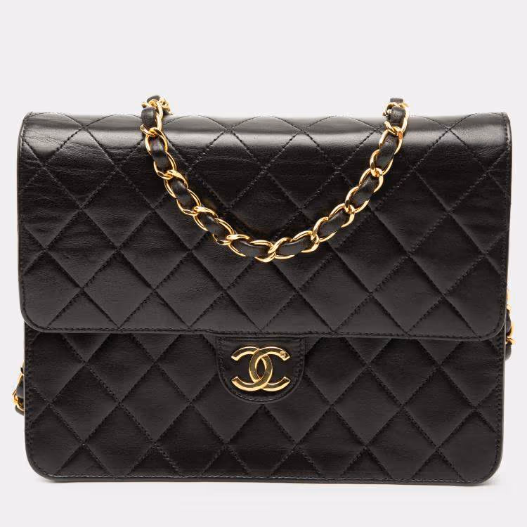 Pre Owned Chanel Black Small CC Quilted Lambskin Single Flap