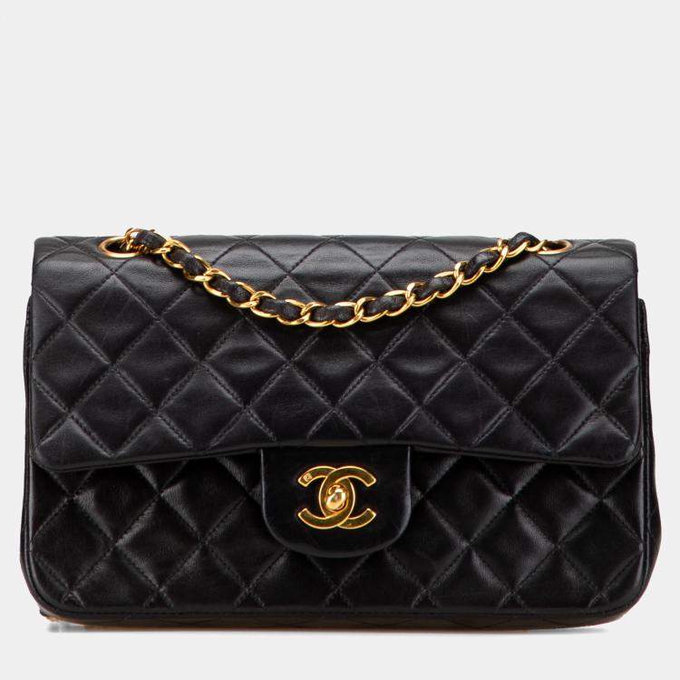 Pre Owned Chanel Black Small Classic Lambskin Double Flap