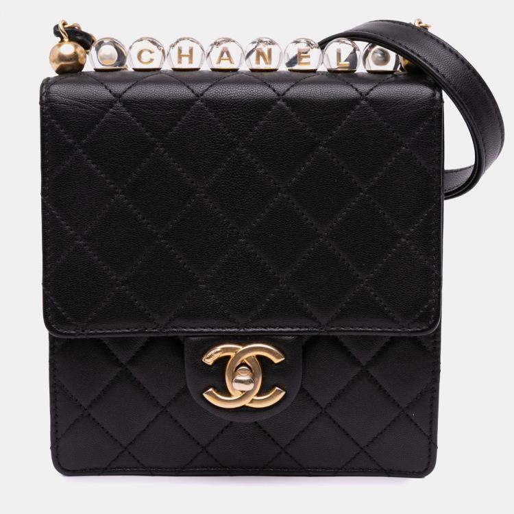 Pre Owned Chanel Black Small Lambskin Chic Pearls Flap Bag