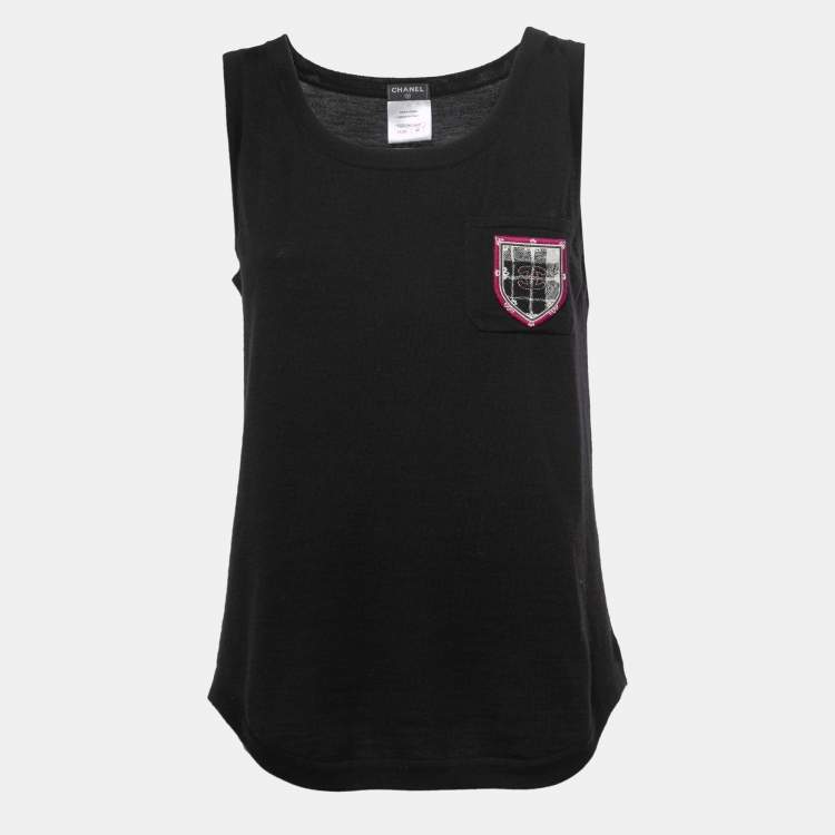 Chanel Black Wool Knit CC Crest Detail Tank Top M