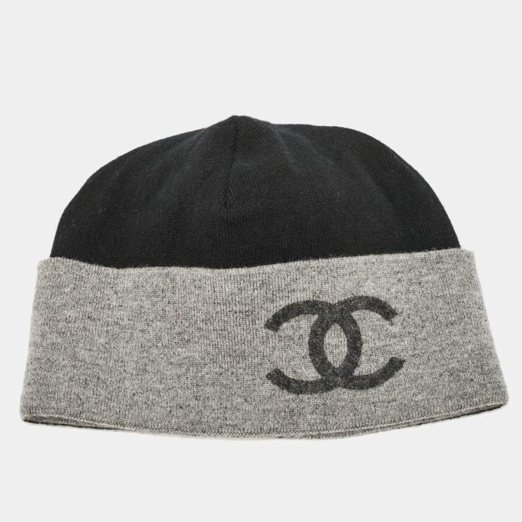 Pre Owned Chanel Black/Grey CC Cashmere Beanie
