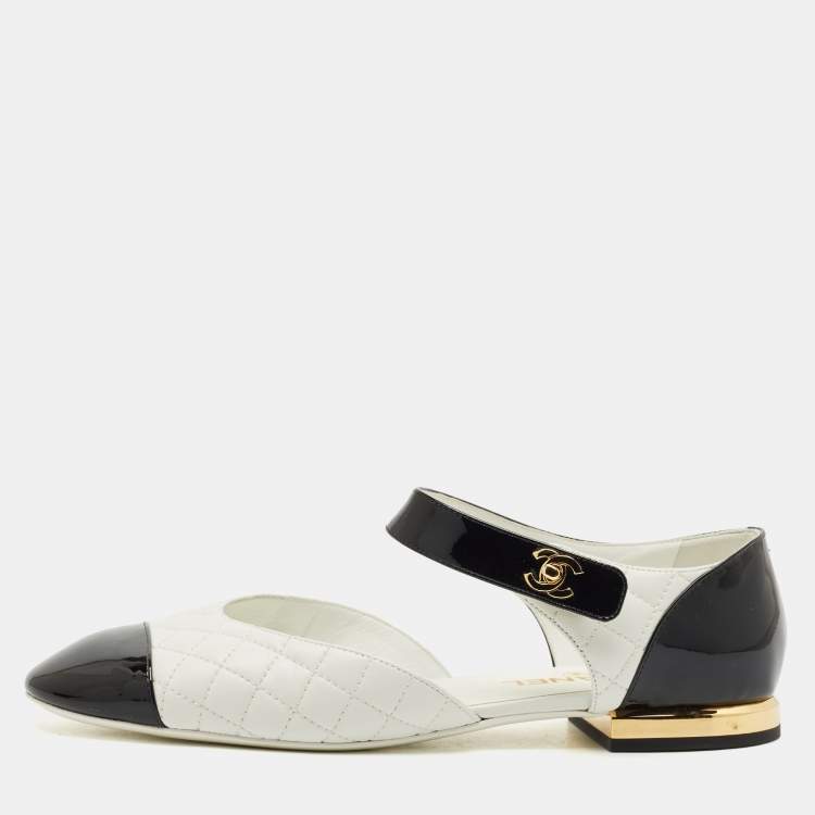 Chanel Black/White Quilted Patent and Leather CC Turnlock Ballet Flats Size 41