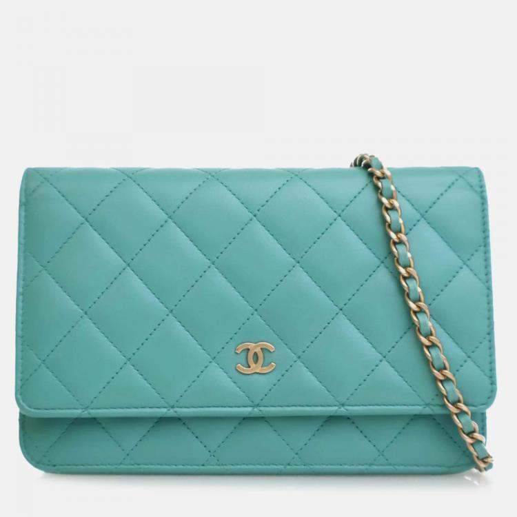 Chanel Blue CC Quilted Lambskin Wallet On Chain