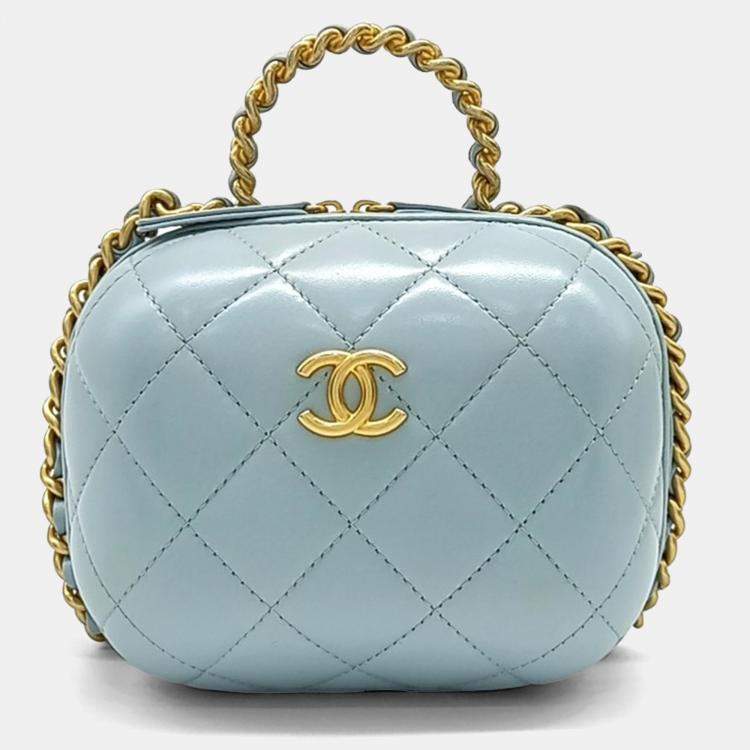 Chanel Blue Leather Cosmetic Top Handle Crossbody Bag