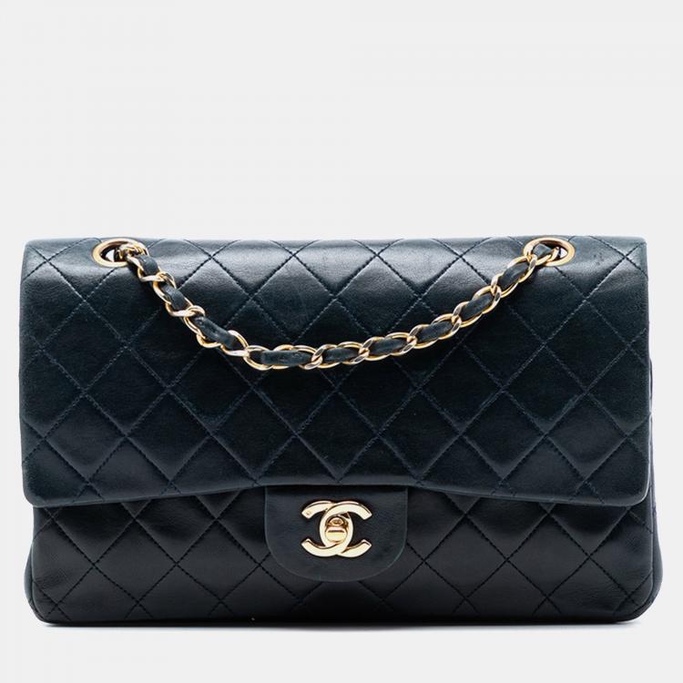 Pre Owned Chanel Blue Medium Classic Lambskin Double Flap