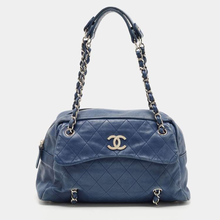 Chanel Blue Quilted Leather CC Front Pocket Bag