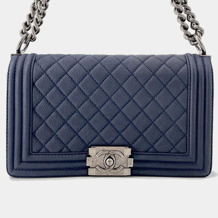 Chanel Boy Chanel Chain shoulder Bag Navy Caviar Leather Size 25
