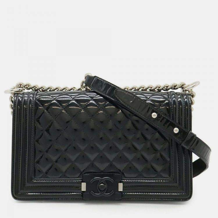 Pre Owned Chanel Boy Chanel Matelasse Coco Mark Chain Shoulder Bag In Black Enamel Leather