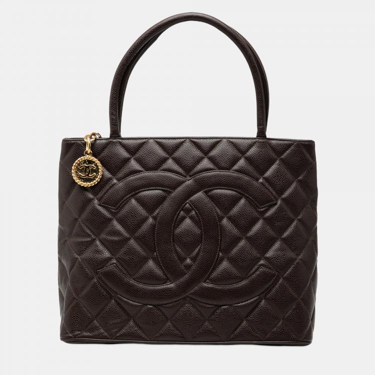 Pre Owned Chanel Brown Caviar Medallion Tote