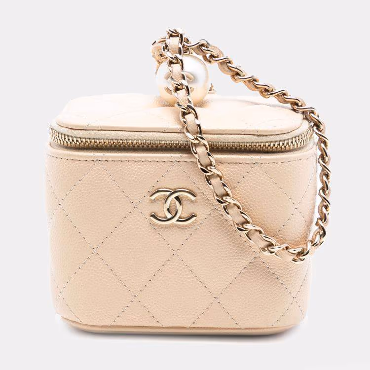 Chanel Brown Mini Quilted Iridescent Caviar Pearl On Top Vanity Case With Chain