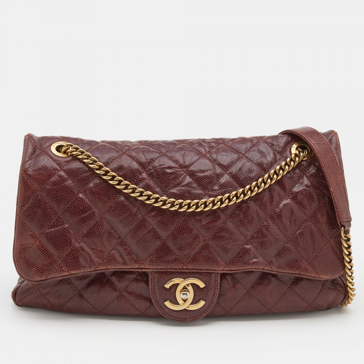 Pre Owned Chanel Brown Quilted Glazed Caviar Leather Jumbo Crave Easy Flap Bag