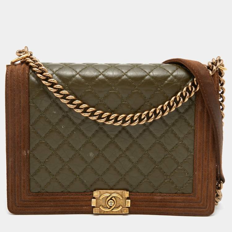 Chanel Brown/Olive Green Quilted Leather Paris-Edinburgh Large Boy Bag
