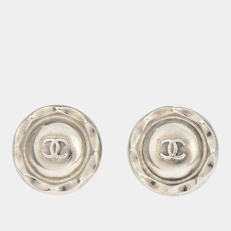 Chanel Button Earrings Clip-On Silver