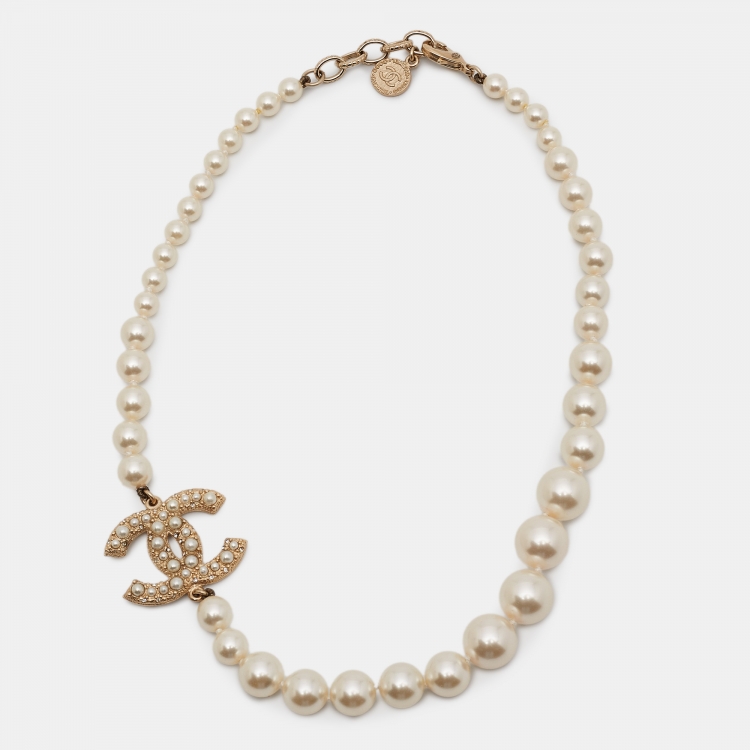 Chanel CC 100th Anniversary Faux Pearl Crystal Gold Tone Necklace