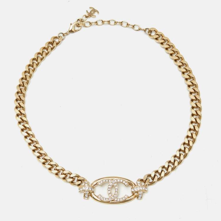 Chanel CC Crystals Gold Tone Necklace