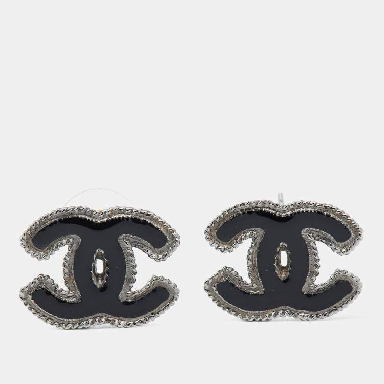 Pre Owned Chanel CC Enamel Silver Tone Earrings