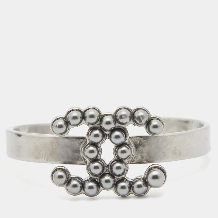 Chanel CC Grey Faux Pearls Gunmetal Tone Bracelet