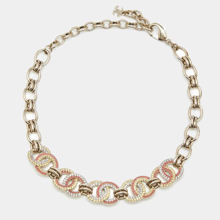 Chanel CC Multicolor Crystal Gold Tone Necklace