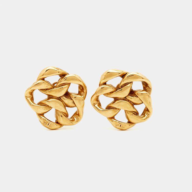 Chanel Chain Link Motif Gold Tone Clip-on Stud Earrings