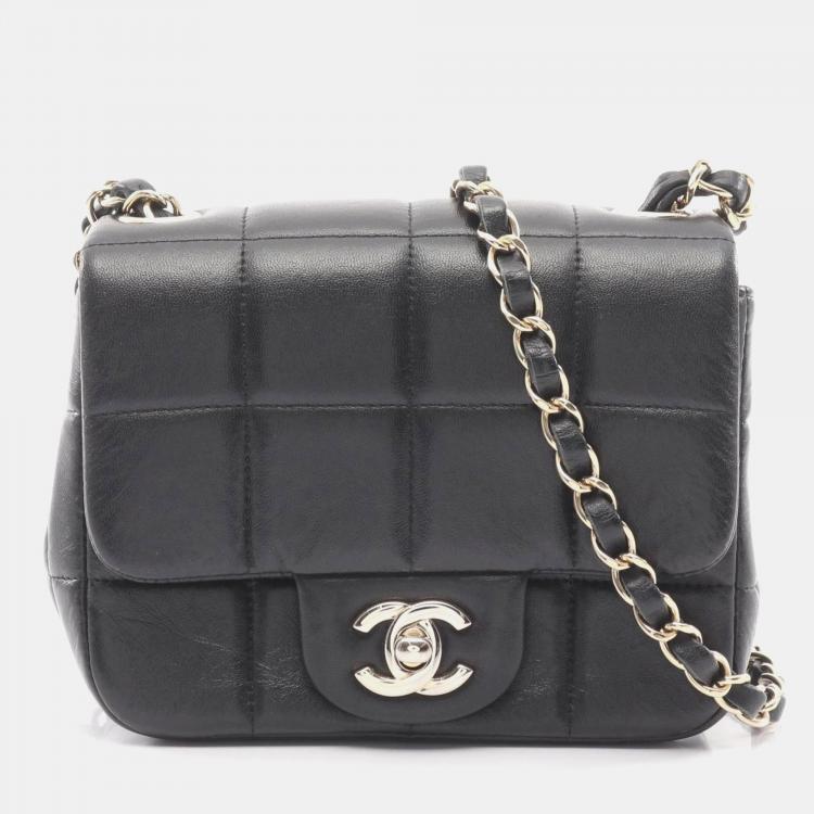 Chanel Chocobar Mini Flap Shoulder Bag In Lambskin Leather Black