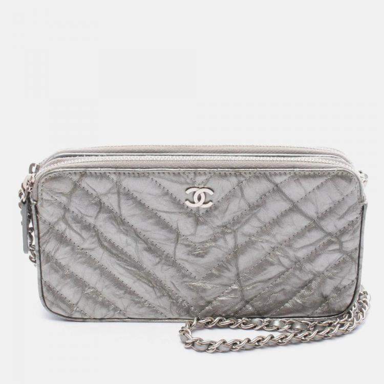 Chanel Coco Chevron V Stitch Silver Patent Leather Chain Shoulder Bag